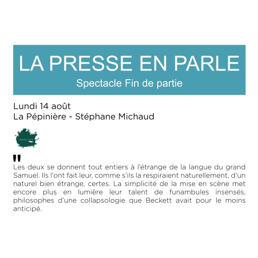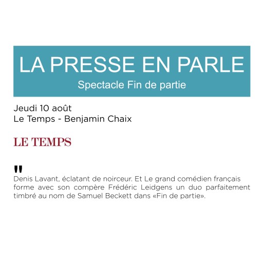 « une lente agonie ou le grotesque côtoie la métaphysique et le sublime. Porté par le duo Denis Lavant-Frédéric Leidgens, la pièce déploie toute la puissance du théâtre de l’absurde (…) Malgrè toute sa férocité, Fin de Partie est une comédie. Une comédie du désespoir certes, mais une comédie tout de même. Face à leur condition, les personnages oscillent entre apitoiement et autodérision. Le haussement des sourcils de Denis Lavant, les jeux de mains de Frédéric Leidgens : tout concourt . Faire sourire le spectateur, et même rire lorsqu’il est nourri par la fulgurance des dialogues » Marianne