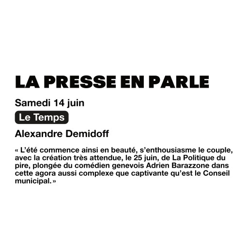 Le Temps : À Genève, l’été du Théâtre de l’Orangerie sera jubilatoire, grâce aux comédiens Bastien Semenzato et Céline Nidegger