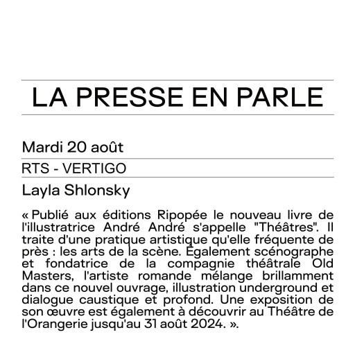 Après avoir verni son nouveau livre «THEATRES», publié aux éditions Ripopée, Sarah a investi la serre pour réaliser une exposition présentant notamment une sélection d’originaux issus de ce livre.