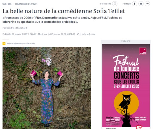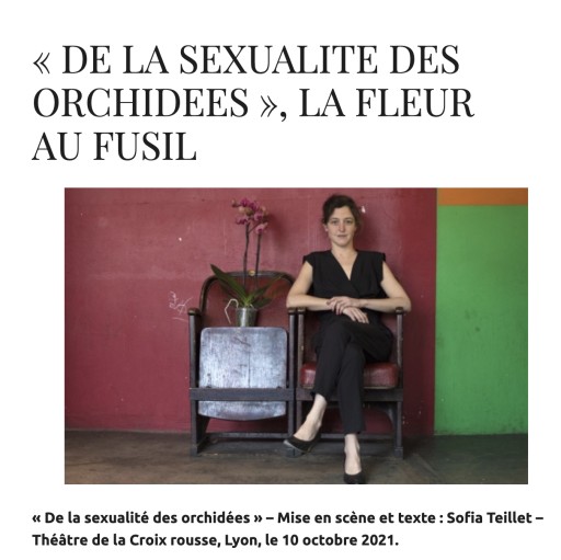« Le spectateur n’oubliera pas le charme fou de cette comédienne, sa capacité à transmettre sa passion pour la complexité du monde végétal en objet théâtral inclassable. » – LE MONDE