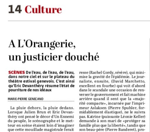 Un faisceau d’éléments converge vers l’évidence : les bains thermaux d’une petite ville – attraction touristique et noyau économique – sont contaminés. Un fait divers d’une rare banalité aujourd’hui… Sauf que la pièce a été écrite en 1882 par le grand dramaturge Henrik Ibsen, et qu’il s’agit d’un de ses chefs-d’oeuvres.